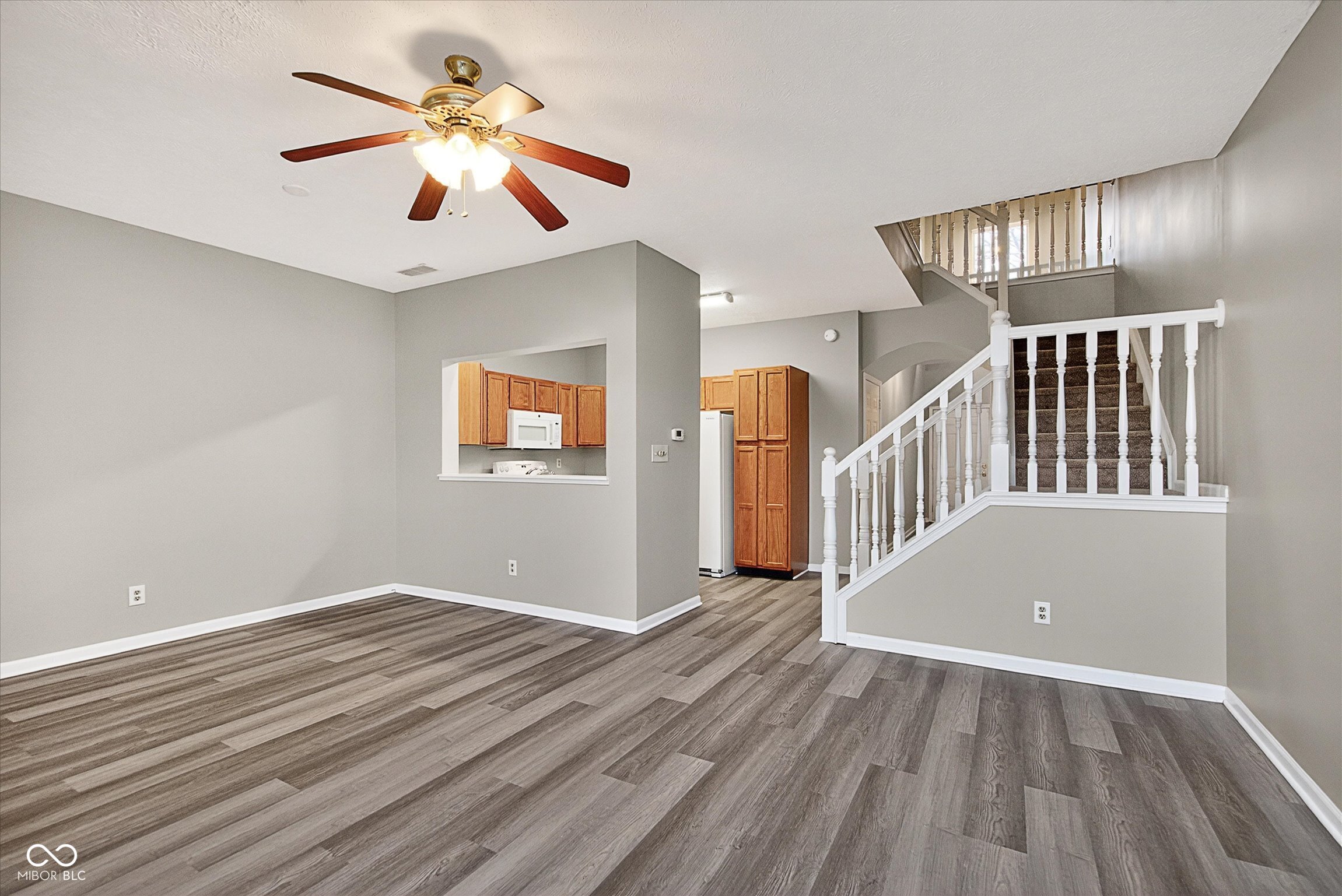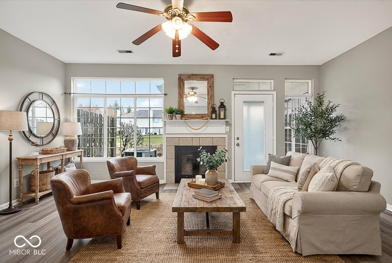 Nicely updated 2 bed/2.5 bath condo with pond view in Pike Township! Features vinyl plank flooring throughout main level and in all bathrooms. Enjoy the open concept floor plan with kitchen overlooking dining area and living room with fireplace. The living area leads to screened in sunroom with pond view. The upper level features versatile loft and two full bedrooms and bathrooms. The primary suite features vaulted ceiling, full bathroom with double vanity and large walk-in closet. Conveniently located near shopping, schools and the interstate. Ready for you to move right in!